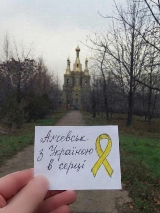 Жовті символи українського спротиву знову з'явилися в окупованих Алчевську, Донецьку та Перевальську (фото)
